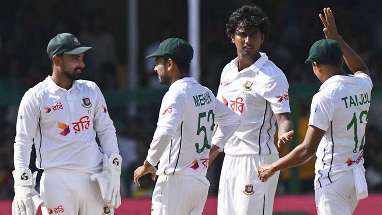 বিরতি থেকে ফেরার কিছুক্ষণের মধ্যেই আউট হয়ে যান মিরাজ। ৬৭ বলে ২৩ রান করে আউট হয়ে যান তিনি। তার বিদায়ের পর টেইল এন্ডারদের দিয়ে লড়েছেন জাকের আলি। ৮৯ বলে ৫৩ রান করে তিনিও অবশ্য ফিরেছেন দিনশেষ হওয়ার আগে। ৬৩ বলে ২৫ রান এসেছে তাইজুল ইসলামের ব্যাটেও।