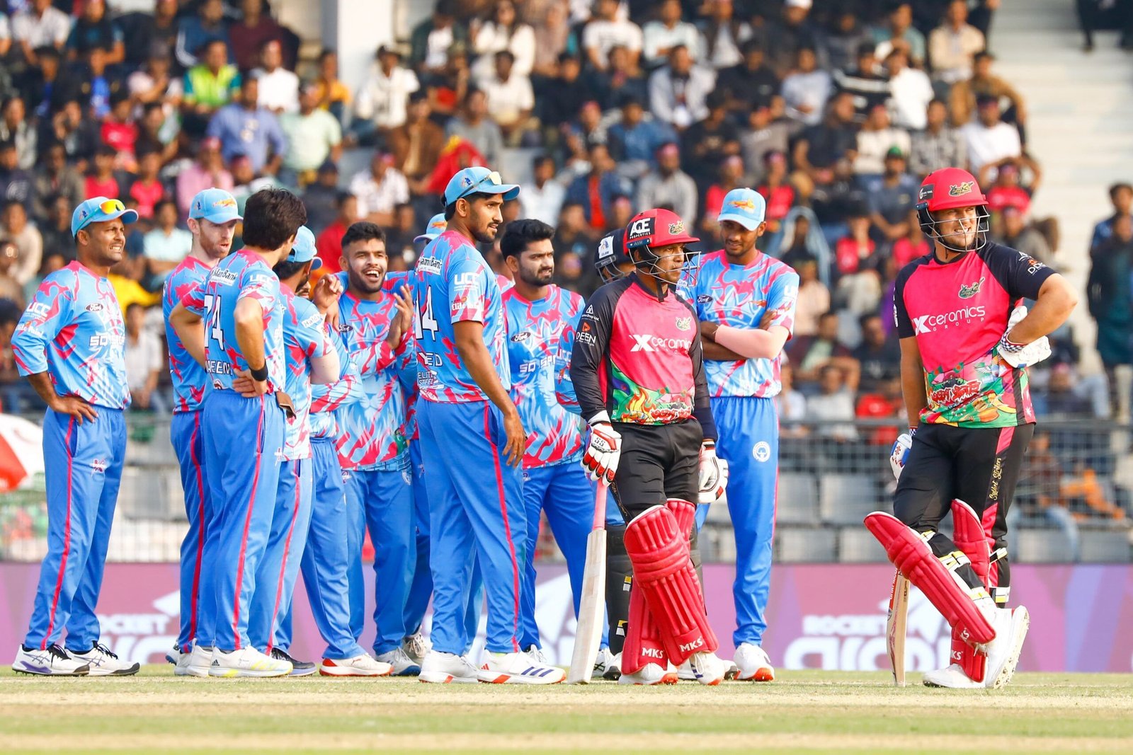 চিটাগং কিংসের হয়ে ৩ উইকেট শিকার করেন মোহাম্মদ ওয়াসিম। ২ উইকেট তুলেছেন আলিস আল ইসলাম। ১টি করে উইকেট নেন নাবিল সামাদ, শরিফুল ইসলাম এবং খালেদ আহমেদ।