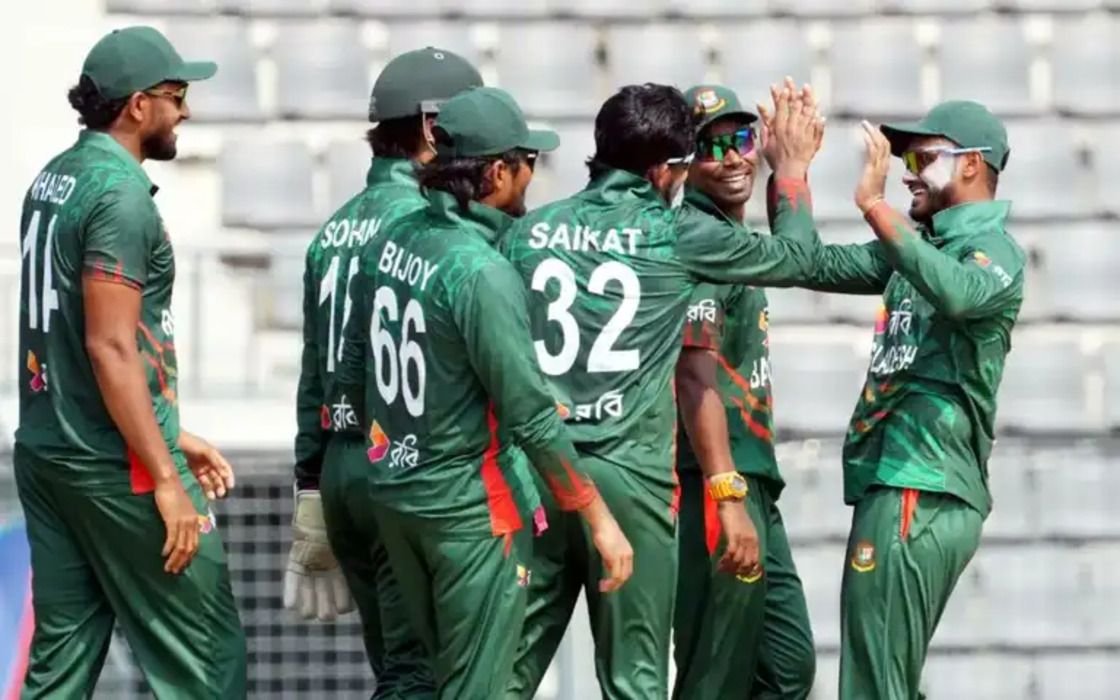বাংলাদেশের পক্ষে নাসুম আহমেদ, মোসাদ্দেক হোসেন সৈকত ও নাঈম হাসান দুটি করে উইকেট পেয়েছেন।