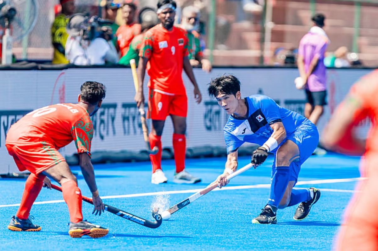 ভারতের রাজগিরের বিহার স্পোর্টস ইউনিভার্সিটি হকি স্টেডিয়ামে প্রথম কোয়ার্টারে দক্ষিণ কোরিয়ার সামনে দাঁড়াতে না পারলেও ধীরে ধীরে প্রতিরোধ গড়েছে বাংলাদেশ।