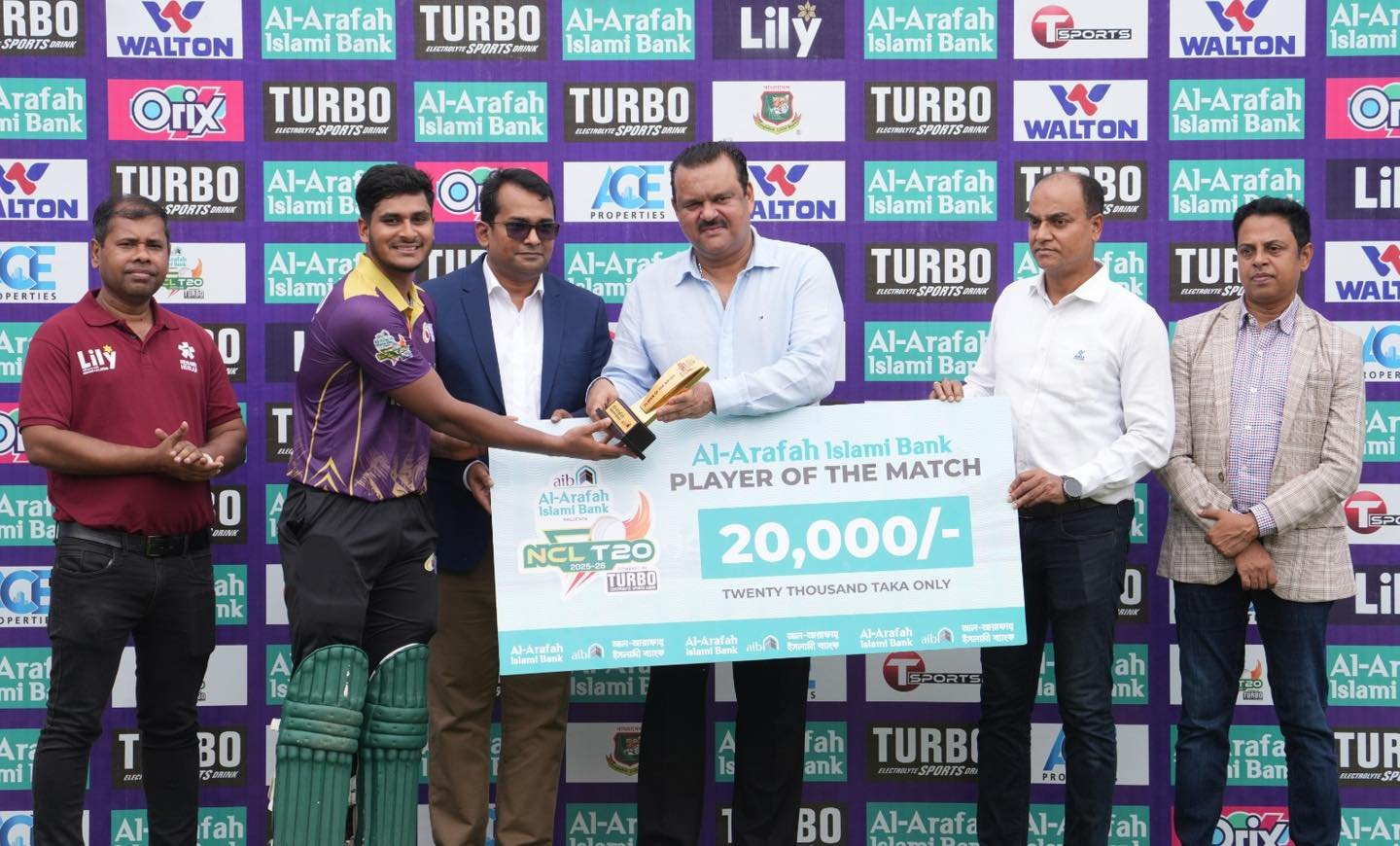 রাজশাহীর হয়ে শফিকুল ইসলাম দুটি ও আসাদুজ্জামান পায়েল একটি উইকেট নেন।