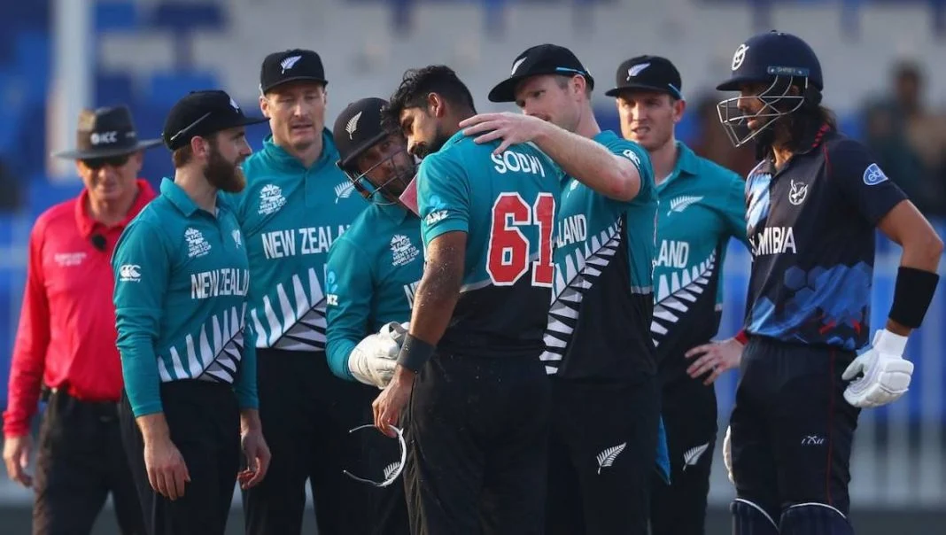 আইসিসি টি-টোয়েন্টি বিশ্বকাপে নামিবিয়াকে ৫২ হারিয়ে সেমিফাইনালের দৌড়ে টিকে রইলো নিউজিল্যান্ড। ফিলিপস-নিশামের ঝড়ো ব্যাটিংয়ে ১৬৩ রানের লড়াকু পুঁজি পায় কিউইরা। জবাবে বোল্ট-সাউদি বোলিং তোপে ১১১ রানে থামতে হয় নামিবিয়াকে।