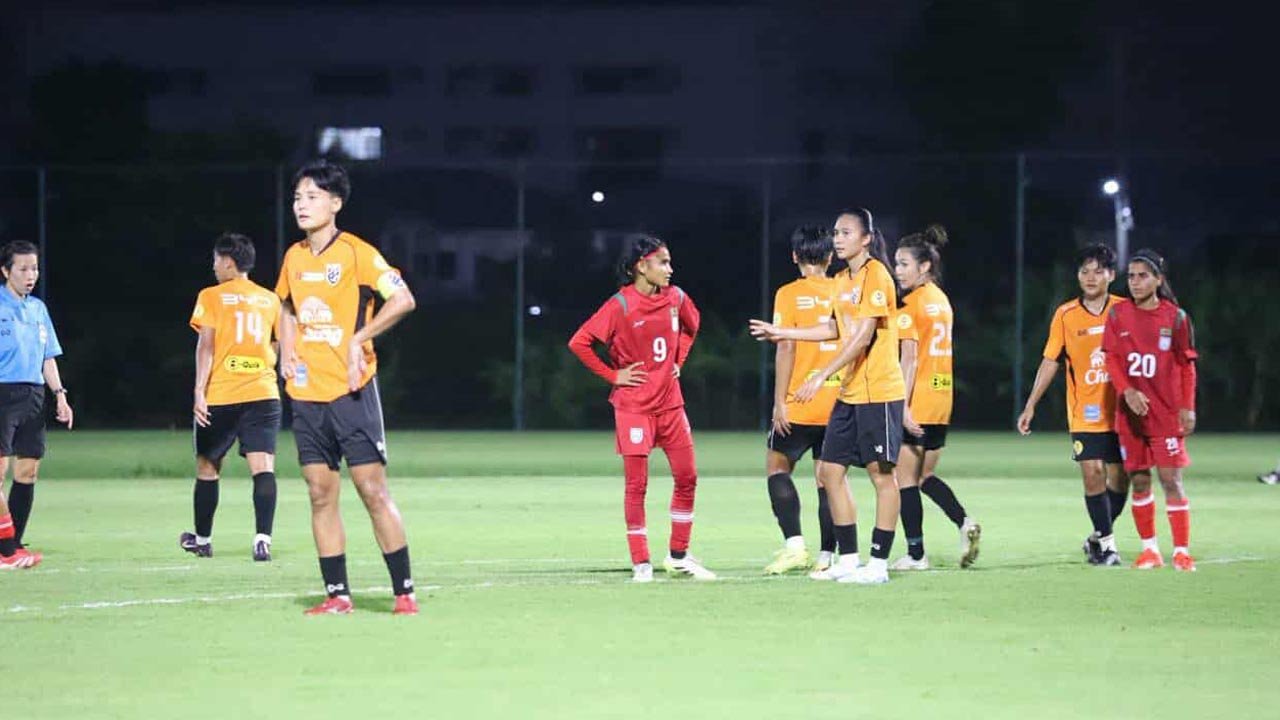 ব্যাংককের থনবুরি বিশ্ববিদ্যালয়ের মাঠে আজ প্রথম প্রীতি ম্যাচে স্বাগতিক থাইল্যান্ডের কাছে ৩-০ গোলে হেরেছে লাল-সবুজের মেয়েরা।