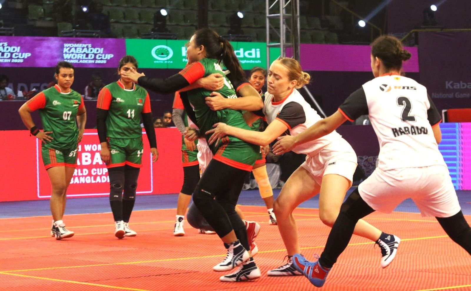 নবাগত জার্মানিকে উড়িয়ে দিল বাংলাদেশনবাগত জার্মানিকে ৫৭-২৭ পয়েন্টে উড়িয়ে দিয়ে ‎নারী কাবাডি বিশ্বকাপে নিজেদের দ্বিতীয় জয় তুলে নিয়েছে বাংলাদেশ।