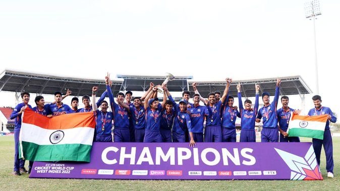 ইংলিশদের হারিয়ে যুব বিশ্বকাপের শিরোপা জয়ের উৎসবে মেতেছে ভারত। শনিবার অনুষ্ঠিত ফাইনালে ইংল্যান্ড অনূর্ধ্ব-১৯ দলকে ৪ উইকেটে হারিয়েছে ভারত অনূর্ধ্ব-১৯ দল। এ জয়ের ফলে পঞ্চম যুব বিশ্বকাপ ঘরে তুললো ভারত।