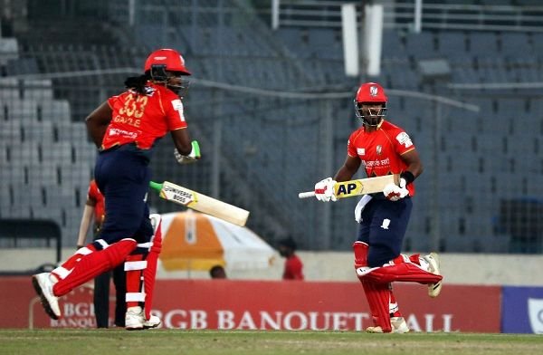 মিরপুরে দিনের দ্বিতীয় ম্যাচে টস হেরে আগে ব্যাট করতে নেমে শুরুটা দুর্দান্ত করতে ফরচুন বরিশালের দুই ওপেনার মুনিম শাহরিয়ার ও ক্রিস গেইল। উদ্বোধনী জুটিতে ৬.২ ওভারে দুজনের ব্যাট থেকে আসে ৫৮ রান।