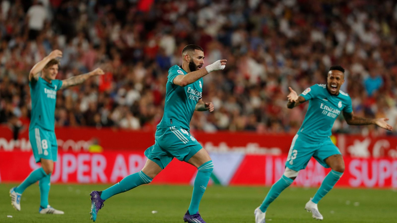 ম্যাচের ২১ মিনিটে রকিটিচের গোলে এগিয়ে যায় স্বাগতিক সেভিয়া। ২৫ মিনিটে ব্যবধান দ্বিগুণ করেন এরিক লামেলা। তবে দ্বিতীয়ার্ধ শুরু হতেই পাল্টে যায় চিত্র। ম্যাচের ৫০ মিনিটে রদ্রিগো ব্যবধান কমানোর পর ৮২ মিনিটে সমতা আনেন নাচো ফার্নান্দেস। ম্যাচের অতিরিক্ত সময়ে বেনজেমার ওই জয়সূচক গোলই।