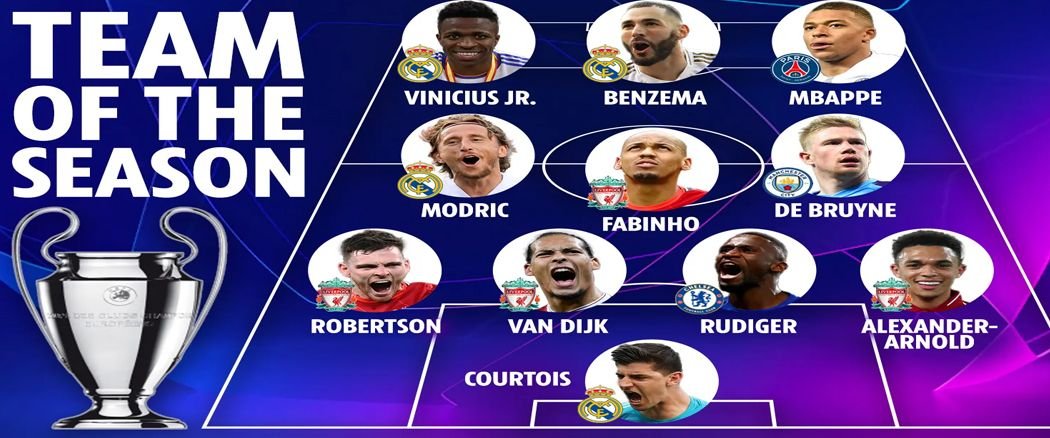 থিবো কোর্তোয়া (গোলরক্ষক, রিয়াল মাদ্রিদ), অ্যালেক্সান্ডার আরনল্ড (লিভারপুল), অ্যান্টনিও রুডিগার (চেলসি), ভার্জিল ফন ডাইক (লিভারপুল), অ্যান্ডি রবার্টসন (লিভারপুল), কেভিন ডি ব্রুইন (ম্যানচেস্টার সিটি), ফ্যাবিনহো (লিভারপুল), লুকা মদ্রিচ (রিয়াল মাদ্রিদ), কিলিয়ান এমবাপে (প্যারিস সেইন্ট জার্মেই), করিম বেনজেমা (রিয়াল মাদ্রিদ) ও ভিনিসিয়াস জুনিয়র (রিয়াল মাদ্রিদ)।