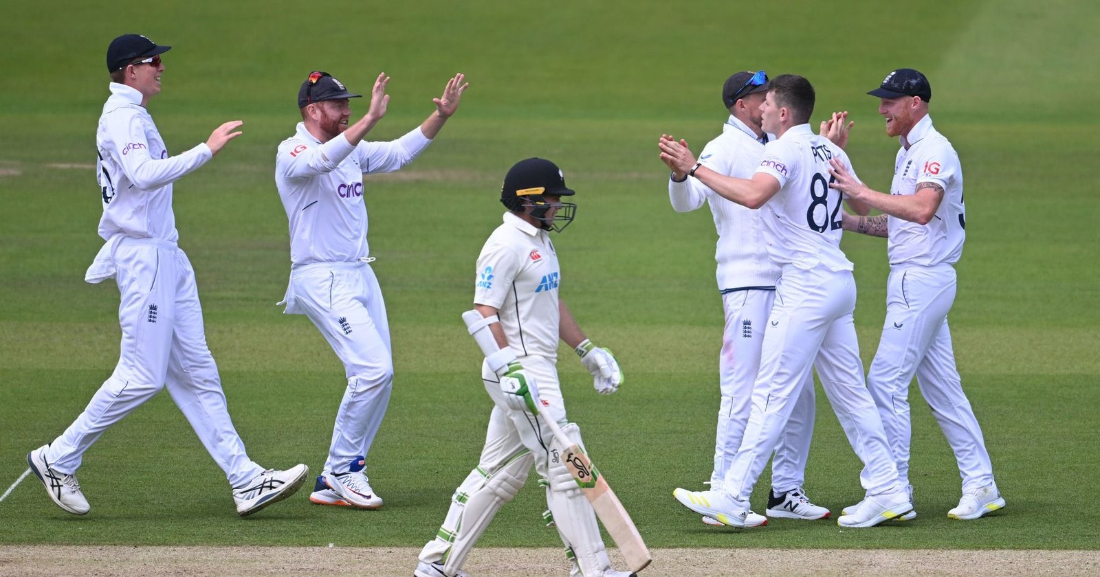 বৃহস্পতিবার লর্ডসে সিরিজের প্রথম টেস্টে ব্যাট করতে নেমে জেমস অ্যান্ডারসন ও অভিষিক্ত ম্যাথ্যু পটসের বিধ্বংসী বোলিংয়ে তোপের মুখে পড়ে অতিথিরা। ২ রানে ২ উইকেট হারানোর পর দলীয় ৪৫ রানে একে একে সাজঘরে ৭ কিউই ব্যাটার।