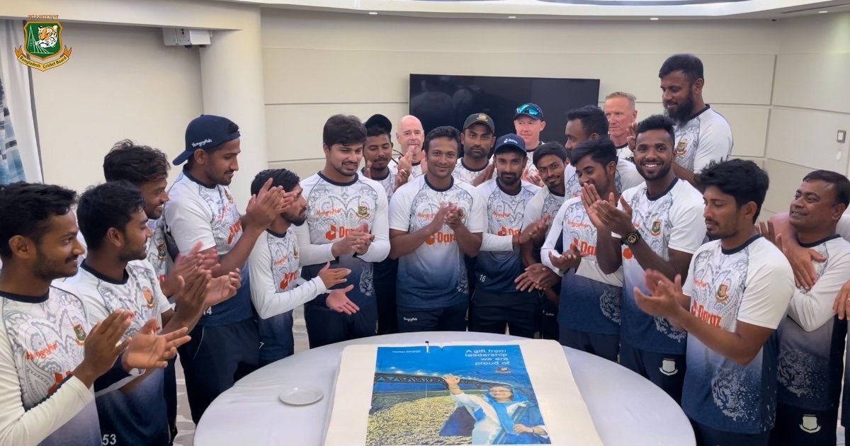 আজ দেশের ইতিহাসের এই মাহেন্দ্রক্ষণে বাংলাদেশ ক্রিকেট দল অবস্থান করছে প্রায় ১৫০০০ কিলোমিটার দূরে, ওয়েস্ট ইন্ডিজের সেন্ট লুসিয়ায়। যেখান থেকে সামিল হয়েছেন ক্রিকেটাররা। বিশাল এক কেক কেটে পদ্মা সেতুর উদ্বোধন উদযাপন করেছে বাংলাদেশ দল।