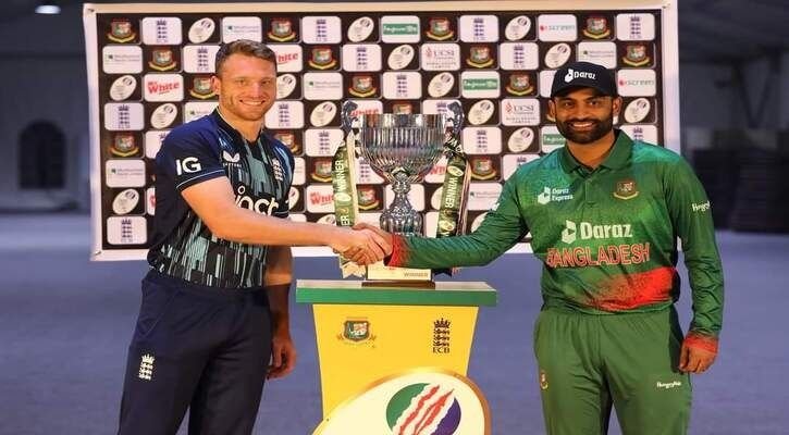 বাংলাদেশ ও ইংল্যান্ড সিরিজকে সামনে রেখে আজ ঢাকার এক হোটেলে ট্রফি উন্মোচন করা হয়। ট্রফি উন্মোচনের সময় উপস্থিত ছিল দুই দলের অধিনায়ক তামিম ইকবাল ও জস বাটলার।