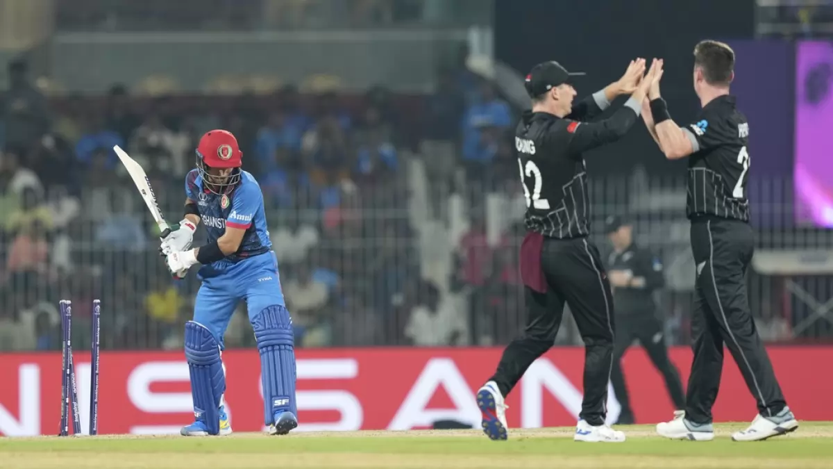 তিনে নেমে ইয়াংয়ের সাথে বেশ ভালো জুটি গড়েন রাচিন রবীন্দ্র। তারা দুজনে মিলে যোগ করেন ৭৯ রানে। আজমতউল্লাহ ওমরজাইয়ের লেংথ ডেলিভারিতে ক্রস ব্যাটে খেলতে গিয়ে বোল্ড হয়েছেন ৩২ রান করা রাচিন। হাফ সেঞ্চুরির পর ফিরেছেন ইয়াংও।
